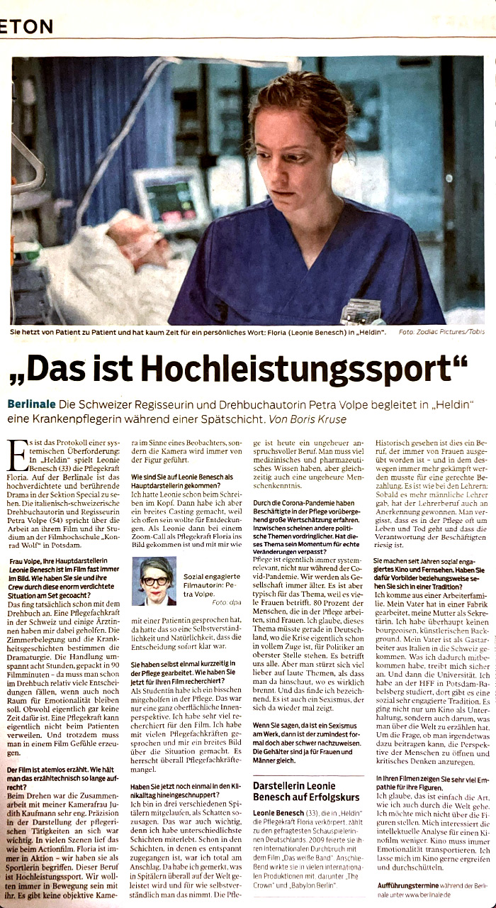 Tagblatt - Das ist Hochleistungssport (Interview mit Petra Volpe/Heldin)