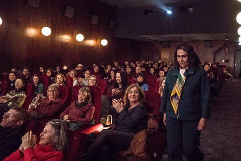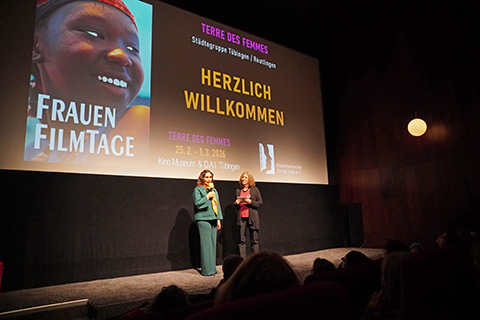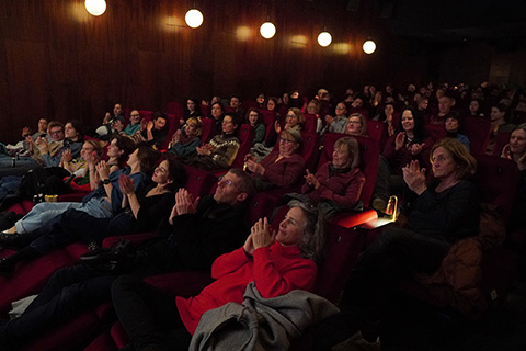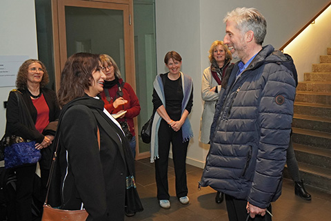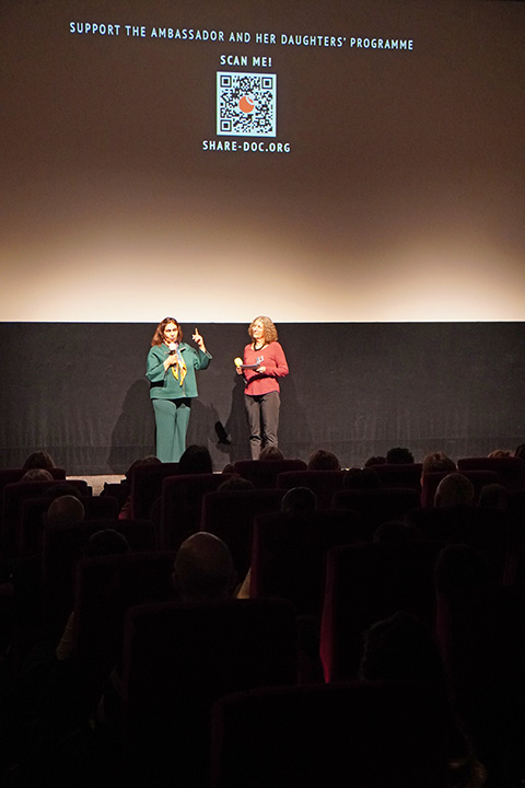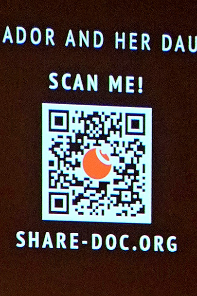 Danach ging es in den ausverkauften Kinosaal der Museums zur Vorführung des Dokumentarfilms THE LAST AMBASSADOR über ihr Leben und Engagement für die Frauenrechte in Afghanistan. In einem ausführlichen Publikumsgespräch konnte sie viel darüber berichten, wie fast wöchentlich immer neue weitere Einschränkungen von den Taliban eingeführt werden, die Frauen und Mädchen völlig aus der Öffentlichkeit verdrängen, sie unsichtbar und unhörbar machen wollen. Aber auch wie die internationale Politik mit der Problematik der Gender-Apartheit der Taliban umgeht. Und besonders erklärt sie eingehend, wie das von ihr ins Lebens gerufene „Daughter Programm“ funktioniert, in dem Frauen von hier aus Mädchen in Afghanistan unterstützen können: finanziell, online durch Mentorship, Fortbildung, und besonders durch solidarische Begleitung – denn nach 5 Jahren Taliban an der Macht sind diese Mädchen in Gefahr, den Mut und die Hoffnung zu verlieren. Der QR-Code macht es leicht, Menschen, die Unterstützung geben wollen, mit dem Programm zu verbinden. Manizha bekommt lang anhaltenden Applaus von einem bewegten und beeidruckten Publikum.