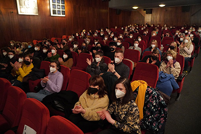 Das begeisterte Publikum schickt einen Fotogruß voll der Anerkennung an sie und bekommt direkt per Chat ihre dankbare Antwort auf so viel Zuspruch: „Thank you so much! I am happy, they liked the movie. Lots of love!“