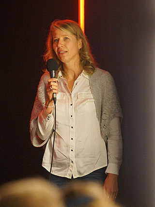 die Expertin Simone Helmschrott vor Ort, um auf die Fragen des Publikums
