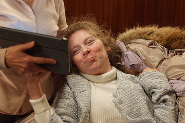 und katholische Theologie. Sie kommunizierte mittels eines Tablets, um